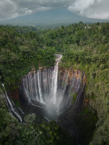 After breakfast and checking out from your hotel, you will set off for one of Indonesia’s most breathtaking natural wonders—Tumpak Sewu Waterfall, also known as Coban Sewu. This extraordinary waterfall plunges 120 meters in a majestic semi‑circular curtain, creating the illusion of a thousand waterfalls flowing at once, framed against lush ridges with Mount Semeru rising proudly in the distance. Your first highlight is the panoramic viewpoint, where you will be greeted by an awe‑inspiring vista—perfect for photos and soaking in the sound of cascading water. From there, you have the option to descend to Goa Tetes, a serene waterfall and freshwater pool where you can unwind and enjoy a refreshing dip amidst nature’s symphony. After your waterfall adventure and lunch, enjoy a scenic drive to your resort in Cemoro Lawang (approximately 2.5 hours’ drive), where the dramatic landscapes of Mount Bromo await you next.
